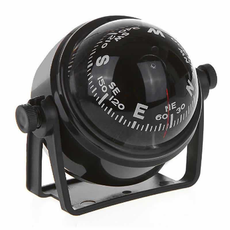 Bússola de sobrepor, produzida em plastico ABS preto, com iluminação 12v
