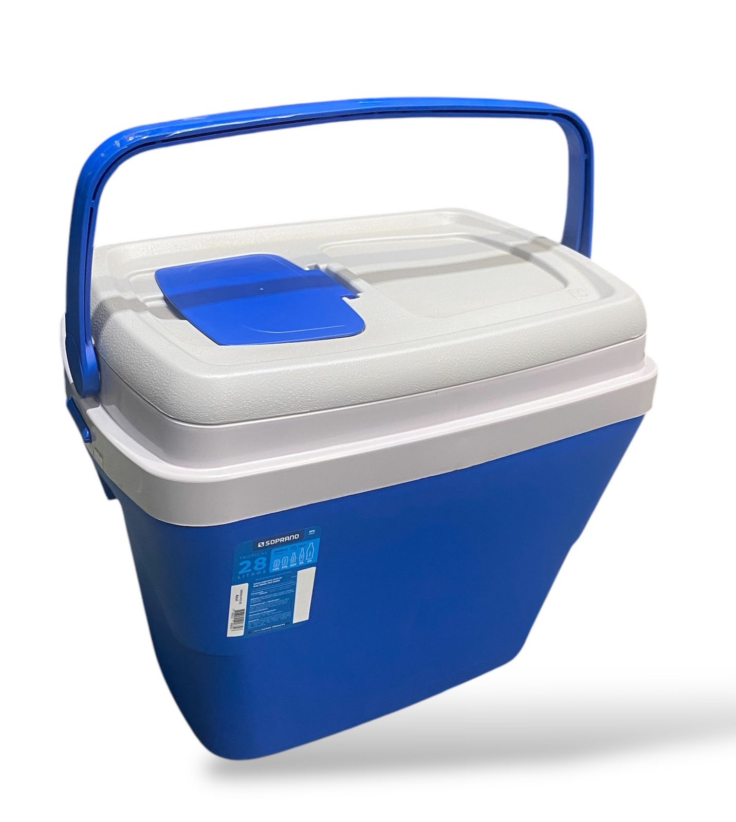 Cooler com 28 Litros de capacidade, livre de bisfenol (BPA FREE), exclusiva tampa de acesso rápido que garante mais facilidade para os seus clientes, design diferenciado, alça de mão articulável e retrátil. Cooler possui tampa com porta-copos numerados, trava, alças laterais embutidas e isolamento em isopor (EPS). Este cooler pode ser encaixado um em cima do outro, otimizando o espaço de armazenamento em até 35%.