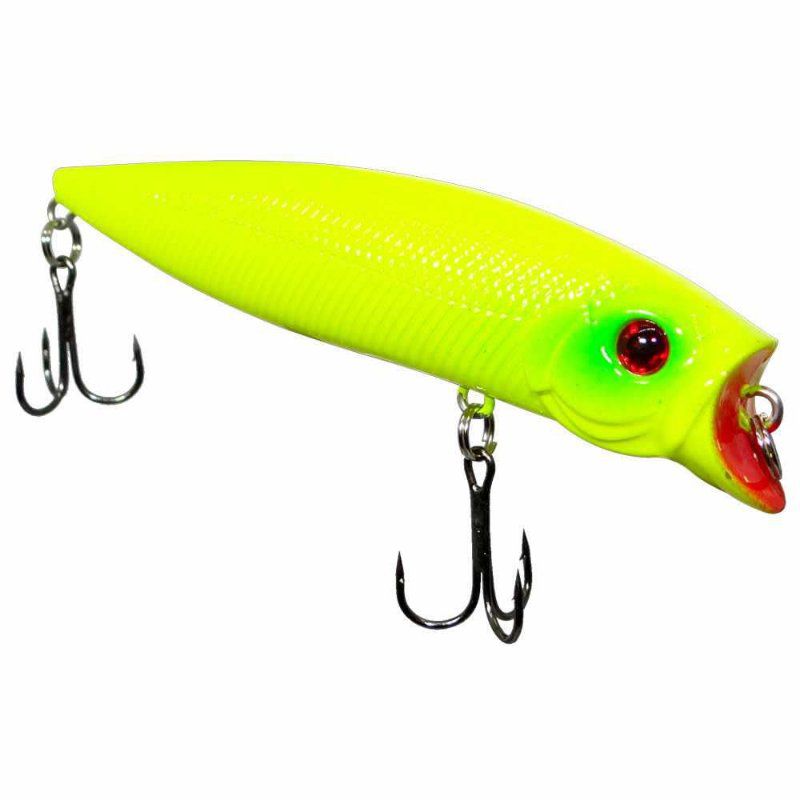 Trabalho: Arremesse a isca no ponto desejado, aguarde 1 ou 2 segundos e imprima um toque forte e seco de tonta de vara, com isso a isca fará uma acção de popper ou seja um "ploc" ca flor dágua imitando um peixinho apanhando alimento na superfície, em seguida recolha constante imprimindo toques contínuos de pontea de vara o que fará que a isca nade a meia água alternando um zig-zag a cada toque seu. Este trabalho é irresistível para o Tucunaré!