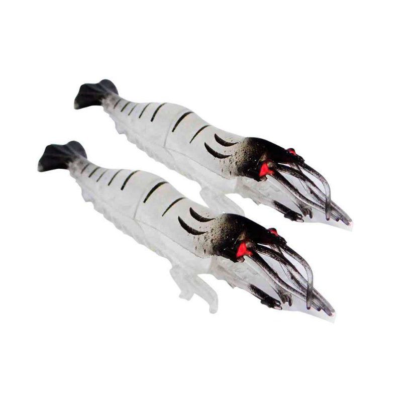 Descrição do Kit 2 Unidades de: Isca artificial Camarão Robalo fumacinha 9 cm .Isca de camarão artificial feita de silicone, ideal para pescas com anzol Jig Head (não incluso na compra). 9cm