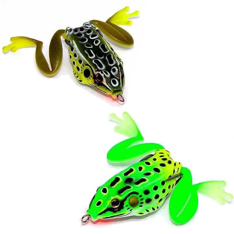 Isca artificial soft com corpo de silicone e anzol anti-enrosca. Imita sapinho e é muito eficiente na captura de traíras, tucunarés e outros predadores de água doce.