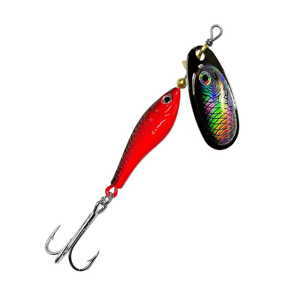 A colher da frente da isca gira criando uma vibração imitando um pequeno inseto perseguido por um peixe, esta ilusão atrai o predador maior para um violento ataque. Muitos tucunarés grandes são capturados com esta pequena isca.