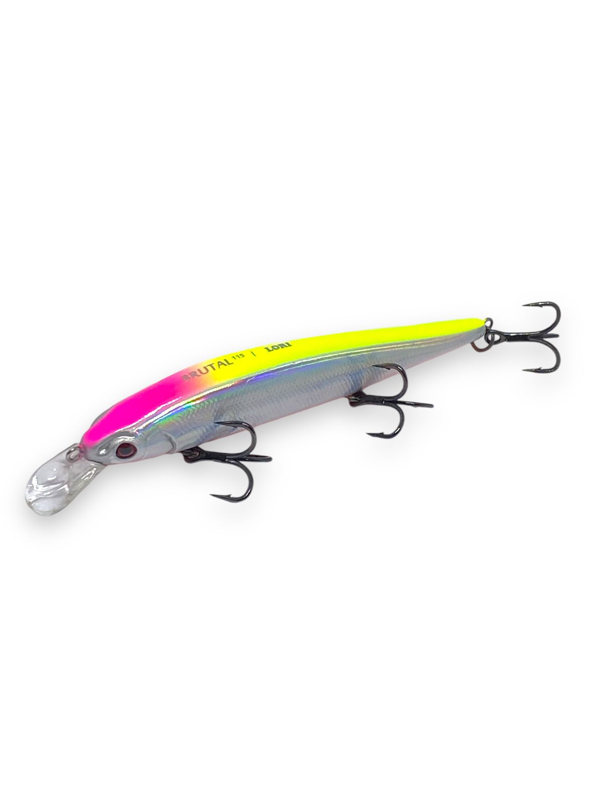 A Brutal possui sistema mecânico de transferência de peso, facilitando arremessos longos e precisos, e seu lastro interno acelera a submersão da isca. Produzida em plástico ABS e vedada com sistema que garante plena fusão do material, possui pintura em tinta automotiva e é equipada com argolas e pitões em aço inox, com 3 garatéias reforçadas premium e olhos holográficos.