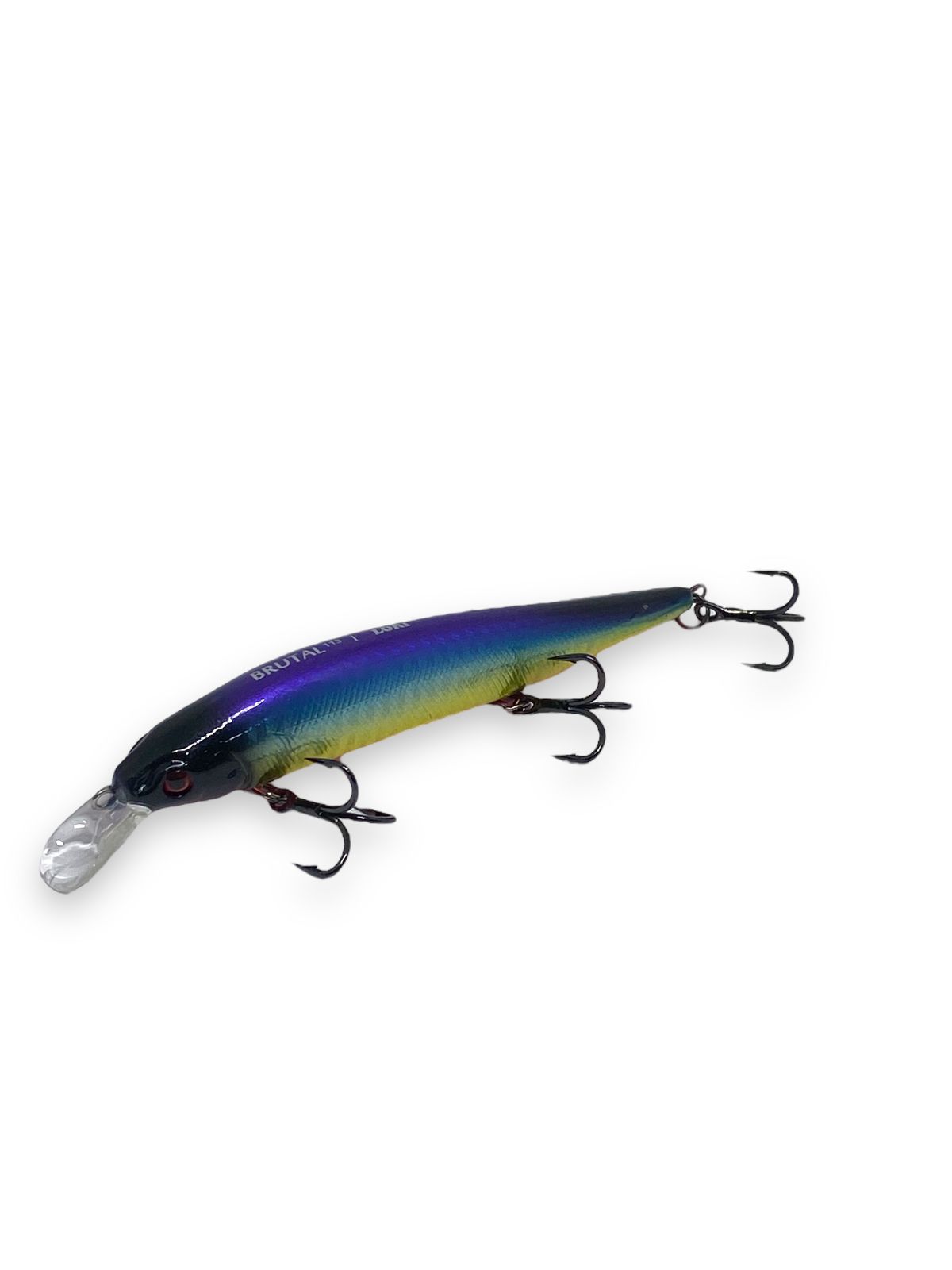 A Brutal possui sistema mecânico de transferência de peso, facilitando arremessos longos e precisos, e seu lastro interno acelera a submersão da isca. Produzida em plástico ABS e vedada com sistema que garante plena fusão do material, possui pintura em tinta automotiva e é equipada com argolas e pitões em aço inox, com 3 garatéias reforçadas premium e olhos holográficos.