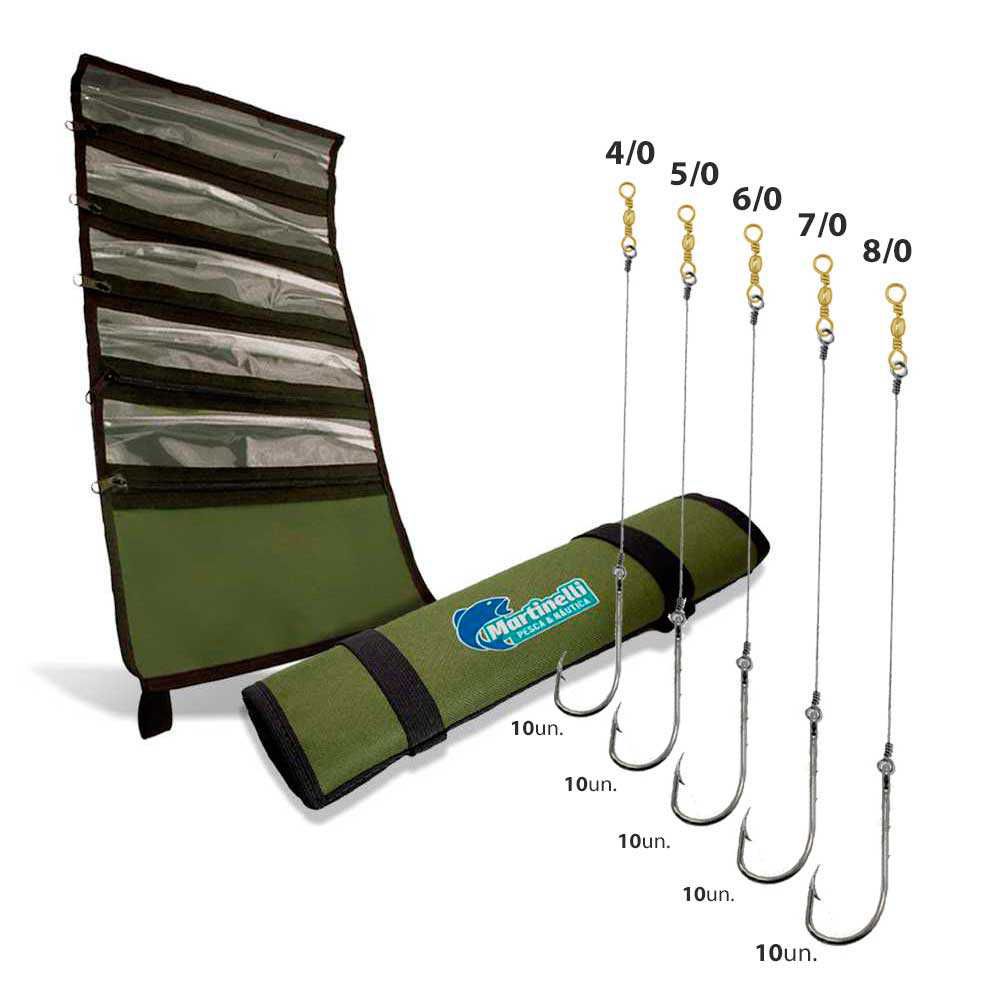 Anzol Marine Sports 4330, tamanho 4/0, encastoado com cabo flexivel 60 lbs e girador BBS número 5.