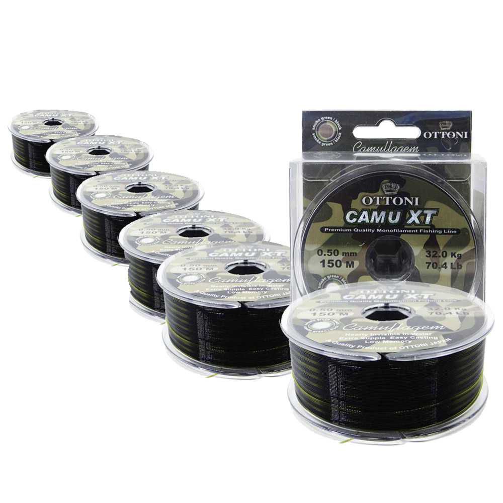 Descrição do Kit 2x Linha monofilamento Camu XT 0,50mm - 150m - 70,4 lbs 2x Linha Monofilamento Platinum XT - 0,60mm 43,48kg - 100m 2x Linha Monofilamento Camou Line 0,40mm - 250m