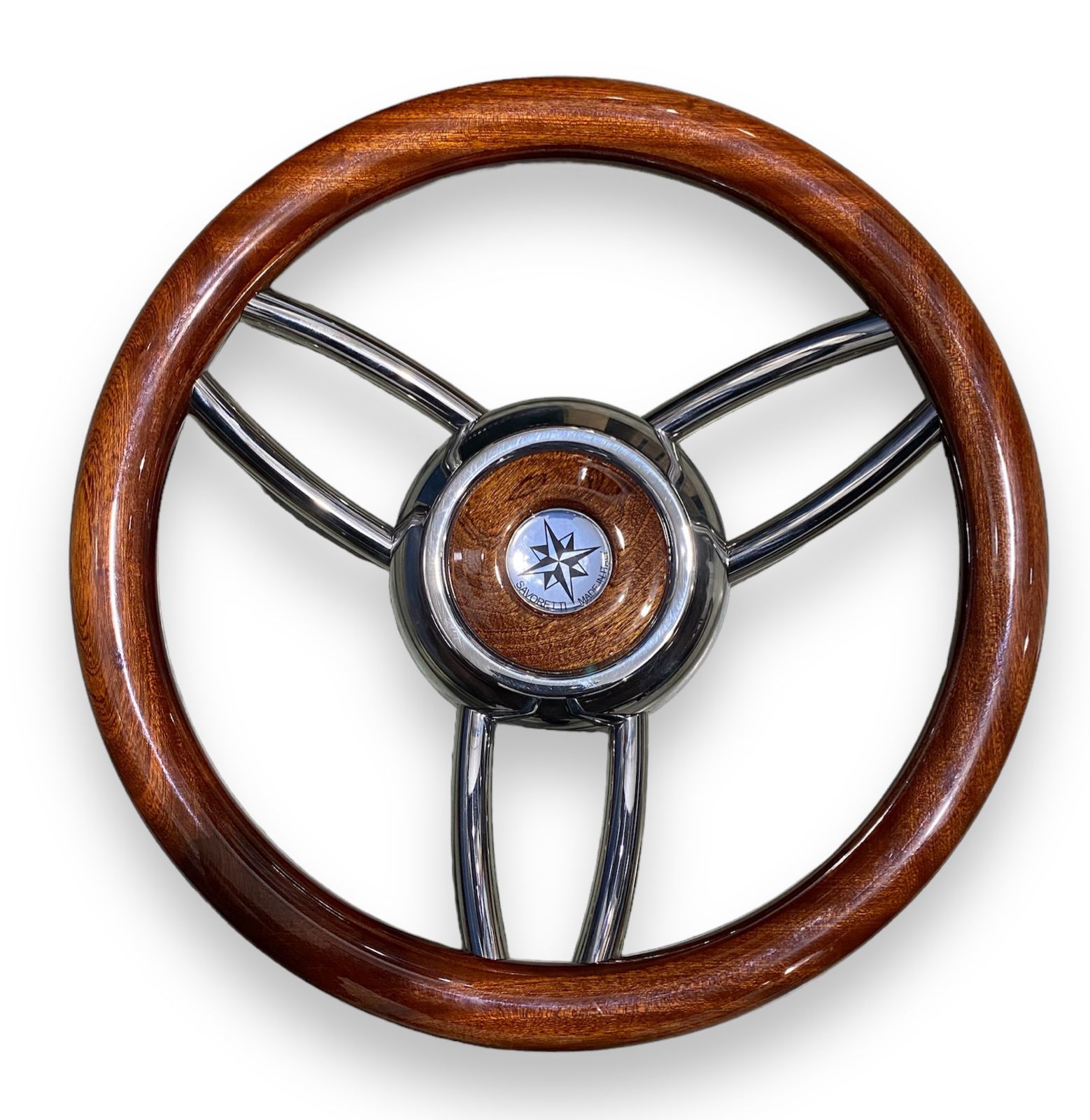 Volante para embarcação esportivo em aço inox T26B-35 madeira 1169